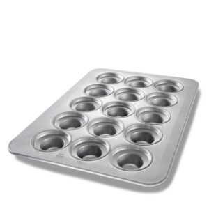 This 15-mould crown muffin pan features deep wells and a wide rim for larger muffins with an attractive crown. It is a heavy-duty option for busy commercial baking operations.